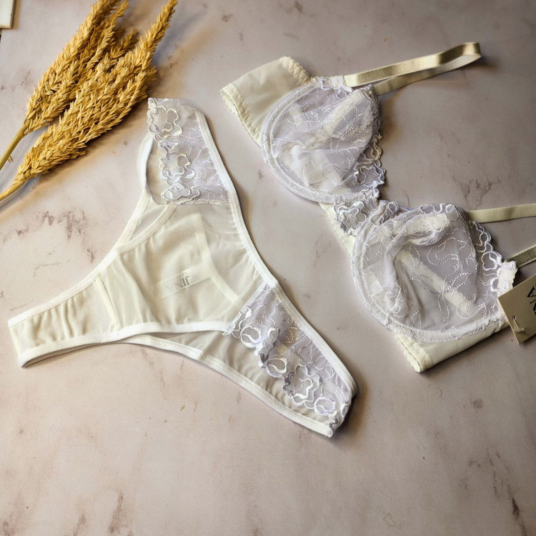ظاهر جذاب: سوتین تکلایه توری و گیپور (بدون اسفنج) با ظاهری بدننما و فنر زیر سینه، که فرمی گرد و زیبا به سینهها میدهد.